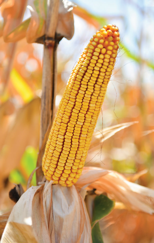 The cob has a length 24-26 cm, about 14-16 rows and red stem